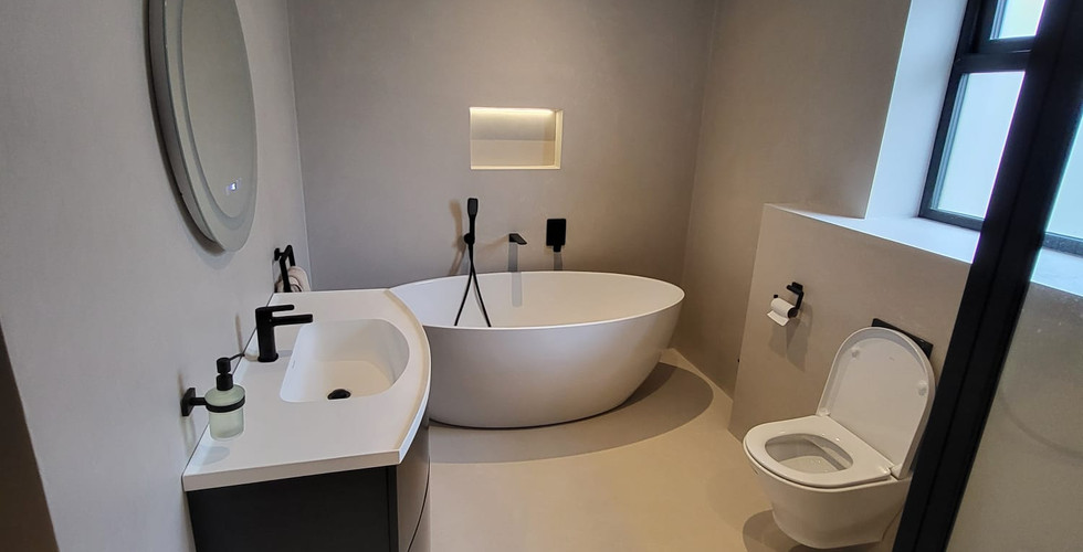 Waterproofing is a crucial factor when choosing materials for surfaces exposed to moisture. Both our Concrete Look Collection and microcement are suitable for such environments, but our Concrete Look Collection takes waterproofing to the next level.